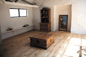 す。床は無垢のフローリング、壁は珪藻土を使用。こちらのショールームは、中古物件購入からリノベーション工事までを約1000万円 |